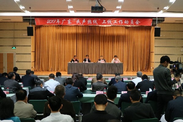 2017年3月22日上午,廣東“民聲熱線”上線工作動(dòng)員會(huì)在廣東廣播電視臺(tái)三樓國際會(huì)議廳召開。來自省直機(jī)關(guān)工委、省廣播電視臺(tái)、省直上線單位、市直機(jī)關(guān)工委、市廣播電視臺(tái)以及省直評(píng)議辦等單位的負(fù)責(zé)同志約150人參加了會(huì)議。