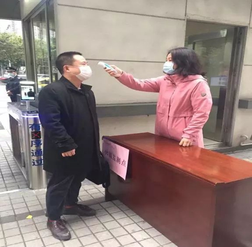 嚴格把好“進門關”,堅持對進入廳機關大樓的人員進行體溫監測。