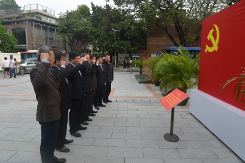 在中共三大會址遺址廣場上,面對鮮紅黨旗,陳秋彥書記領誓,參加活動的全體黨員紛紛舉起右手、緊握拳頭,莊重重溫入黨誓言。在展覽館,大家認真聆聽講解員的講解,用心觀看我黨建黨初期的崢嶸歷史圖片,以及一件件載著先輩革命斗志的珍貴文物。三大的光輝歷史,以及我黨早期領導人面對困難所表現出來的堅強的革命意志給黨組成員留下了極其深刻的印象,再次接受了深刻的黨性教育。