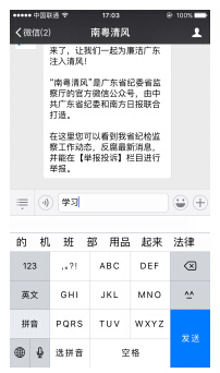 點擊左下角“小鍵盤”圖標,回復(fù)“學(xué)習(xí)”,如下圖所示: