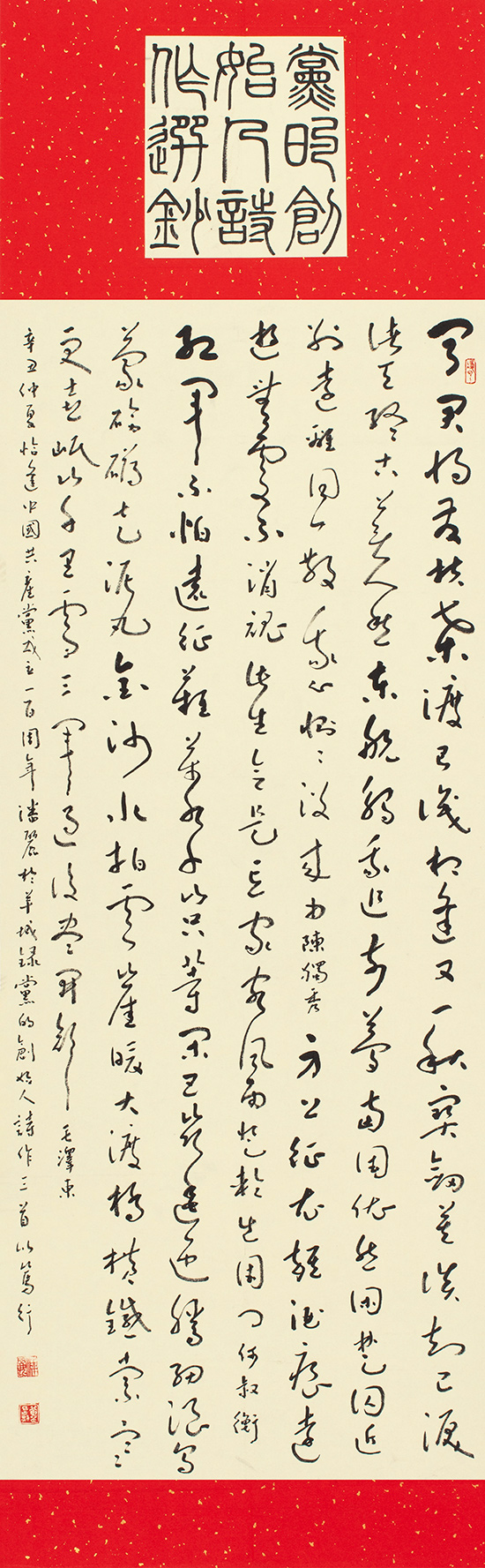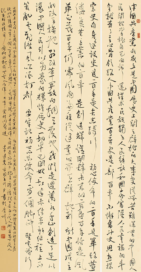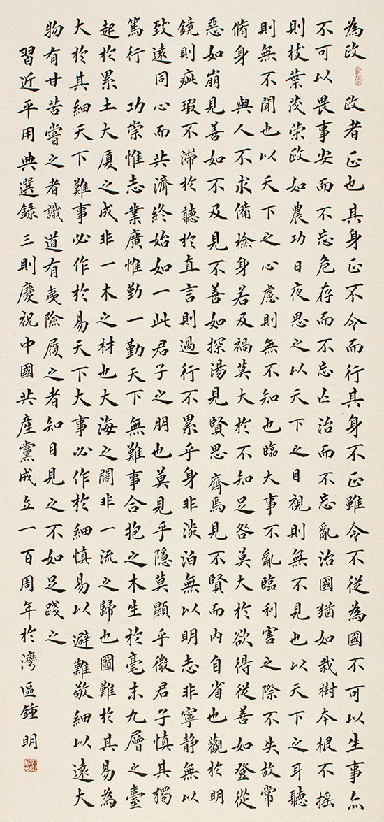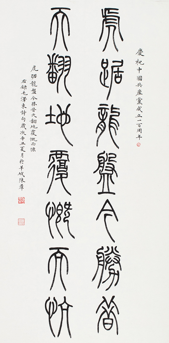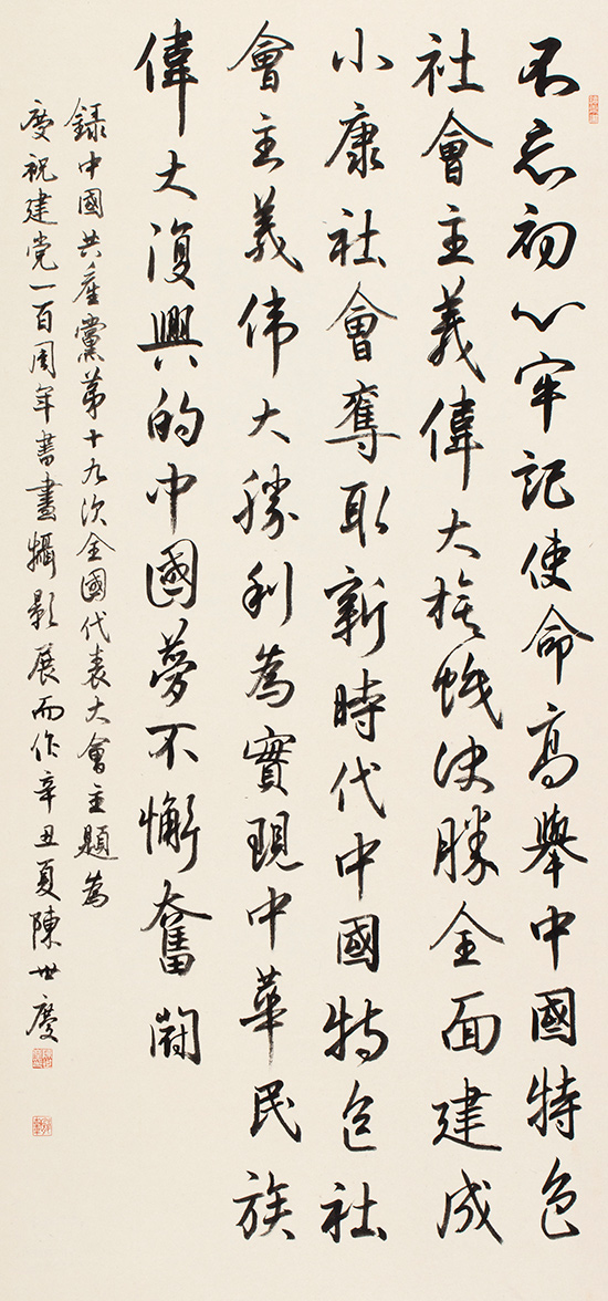 在中國共產黨百年華誕來臨之際,中共廣東省直屬機關工作委員會聯合廣東省文學藝術界聯合會、廣東畫院,以“永遠跟黨走,奮進新征程”為主題,共同舉辦慶祝建黨100周年美術書法攝影展。本次展覽從征集的1500多件作品中遴選出300余幅參展,這些作品主題突出、內容豐富、形式多樣,反映了中國共產黨百年奮斗的光輝歷程和歷史貢獻,唱響了中國共產黨好、社會主義好、改革開放好、偉大祖國好、各族人民好的時代主旋律,抒發了干部職工愛黨愛國愛社會主義的深厚情感。
