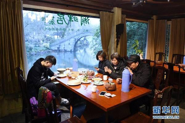 市民在杭州西湖“開心茶館”內(nèi)喝茶休閑(2016年1月5日攝)。據(jù)了解,“開心茶館”轉(zhuǎn)型前為“西湖會”,轉(zhuǎn)型后成為平價茶館。新華社記者 黃宗治 攝