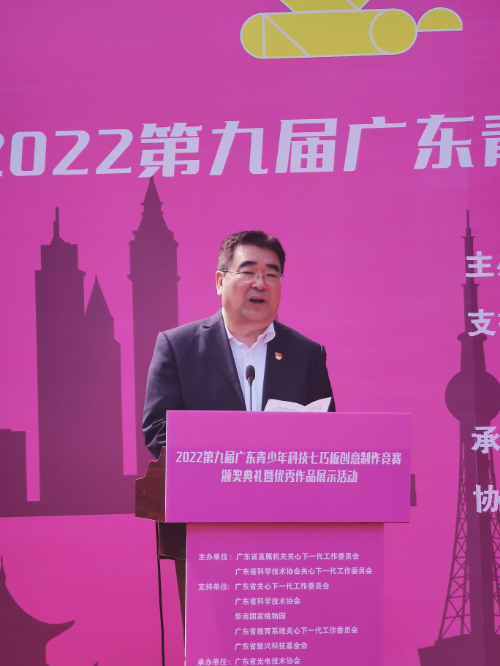 2023年3月11日上午,在省關(guān)工委、省科協(xié)、省教育系統(tǒng)關(guān)工委、省振興科技基金會的指導(dǎo)支持下,由省直機關(guān)關(guān)工委、省科協(xié)關(guān)工委主辦,省光電技術(shù)協(xié)會、全國七巧科技活動廣東宣傳推廣服務(wù)中心承辦的“共建美好大灣區(qū)”2022第九屆廣東青少年科技七巧板創(chuàng)意制作競賽頒獎典禮暨優(yōu)秀作品展示活動在全國科普教育基地——華南國家植物園圓滿舉行。本屆競賽中小學(xué)組共收到各地中小學(xué)校參賽作品7816幅,評出一等獎1076項,二等獎1888項,三等獎3644項,優(yōu)秀輔導(dǎo)教師644名,優(yōu)秀組織單位60家,活動示范學(xué)校7所,優(yōu)秀校本教材2本。大學(xué)組專項賽共收到省內(nèi)外高校參賽作品135項,評出一等獎2項,二等獎6項,三等獎8項,最佳創(chuàng)意獎1項,最佳制作獎1項,最具產(chǎn)業(yè)價值獎1項,優(yōu)秀獎30項,優(yōu)秀指導(dǎo)教師7名,優(yōu)秀組織單位6家,特別貢獻獎5家。