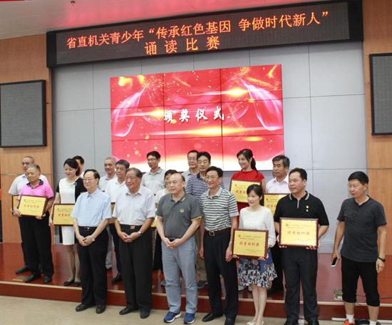 33名參加這次誦讀比賽的學生既有小學生、初中生、高中生,也有大學生,選手們圍繞本次比賽的主題,通過不同的表現形式、誦讀風格,以從容的姿態,流利的表述以及淋漓盡致的發揮,聲音時而激昂,時而輕柔,將自己的滿腔熱情、心聲付諸言語,聲情并茂誦讀了緬懷革命先烈、傳承紅色基因、歌頌偉大祖國作品,引來了場下評委和觀眾的熱烈掌聲。比賽結束后,省朗誦協會會長史子興對參賽選手作了點評,對具有潛力的選手給與鼓勵,隨后省朗誦協會常委趙大明為孩子們作誦讀示范,對青少年開展語言藝術誦讀活動進行現場指導。此次活動還邀請了赴北京參加“中華魂”全國表彰大會的先進集體代表——省機場管理局關工委委員湯樹華同志談體會與感想。省關工委佀志廣副主任,吳澤耀副主任、省直工委肖懷躍副書記等領導為誦讀比賽獲獎學生、“中華魂——《輝煌與夢想》”征文優秀作品獲獎學生和組織活動優秀單位頒獎。最后省直關工委執行主任梁暉作了講話,他指出這次活動是今年省直單位“傳承紅色基因、爭做時代新人”主題教育活動的重要內容,誦讀比賽從內容到形式都充分展示省直機關青少年的精神面貌。少年強則國強,青少年是民族的未來,國家希望所在,紅色基因是中華民族的魂,是我們必須代代相傳的脈,青少年要繼承革命傳統,在紅色基因的熏陶下茁壯成長,爭做新時代合格接班人。
