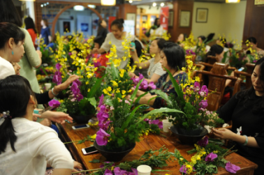 活動以鮮花為媒介,通過插花活動,陶冶情操、傳遞生活美學(xué)。課堂上,老師從花道的歷史淵源開始,詳細(xì)闡述了人文花道的內(nèi)涵、意境和基本章法。大家跟隨老師的示范,親自動手修剪、搭配、整枝,用靈巧的雙手,將一枝枝散落的花材裝點(diǎn)成一盆盆獨(dú)具匠心的作品。一花一世界,小小的花藝作品,展現(xiàn)出人與自然的和諧之美。雖然不少學(xué)員是第一次自己動手插花,但大家都意興盎然,全神貫注,在花的世界里,放松心情、忘卻煩惱,全身心地感受自然之美,收獲了藝術(shù)創(chuàng)作過程帶來的樂趣。自然與心靈交相輝映,呈現(xiàn)花藝之真諦。