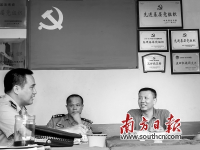 張鳴(右一)生前與清遠監獄基層支部過組織生活。郭智軍攝