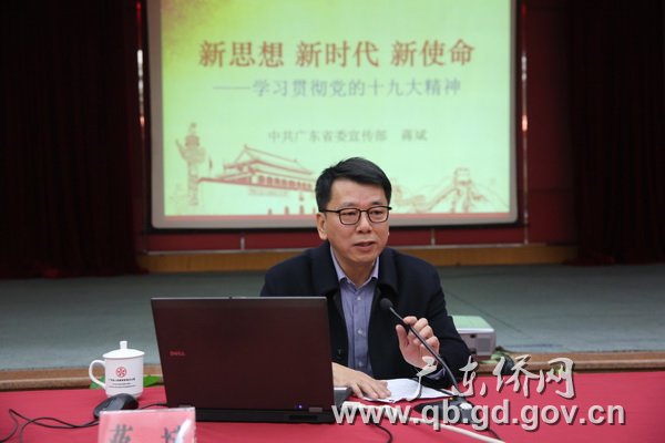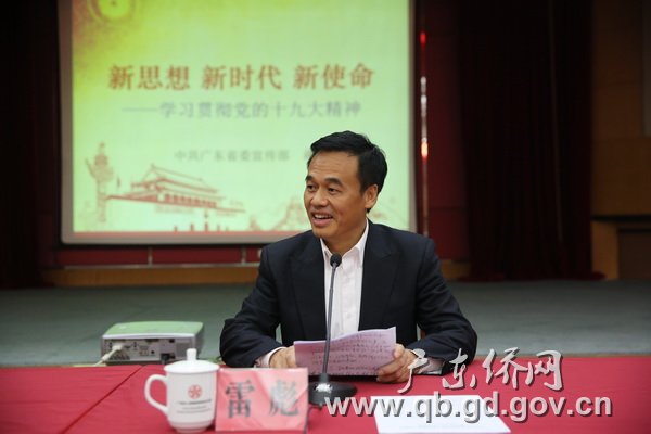 12月11日上午,廣東省僑辦舉辦今年第5期學習論壇,邀請省委講師團成員、省委宣傳部副部長蔣斌作了題為《新思想新時代新使命》的學習貫徹黨的十九大精神專題輔導報告。省僑辦黨組書記雷彪主持了報告會。