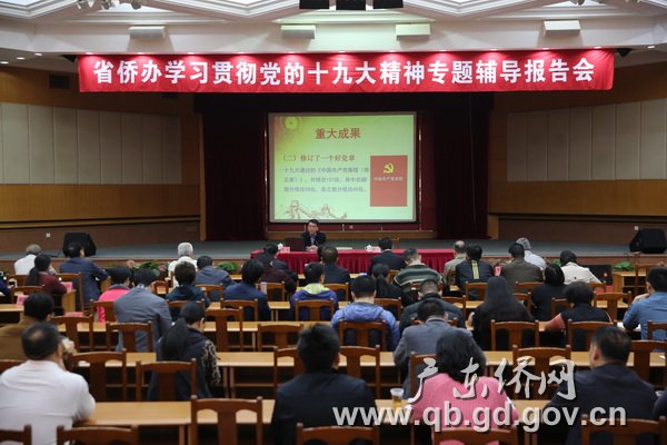 省僑辦主任李心,黨組副書記、巡視員林琳,副主任鄭建民、蔡偉生,副巡視員李仲民等以及省僑辦機關、直屬單位干部職工及離退休人員約100余人參加報告會。