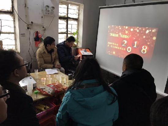 飯后,我們在簡陋的農(nóng)家客廳就地搭好屏幕開始了話新春座談會。首先集中表彰了2017年支部評出“每季一星”黨員,勉勵他們繼續(xù)努力為支部同志帶好榜樣。接下來采取“一圖一故事”的形式每位同志講述自己的故事,回顧和總結(jié)過去的工作和生活點滴,重溫喜悅與歡笑、感動與幸福。有的同志回憶在井岡山和延安學習培訓時的情景,聯(lián)系現(xiàn)在的崗位和業(yè)務工作,更覺得應該發(fā)揚艱苦奮斗、不怕犧牲的精神;有的同志回憶家風教化自己二十余載堅持幫扶貧困學生的志愿者生涯,并將繼續(xù)矢志不渝、竭盡全力地堅守初心;有的同志回憶在鈾礦冶項目上冒著山坡塌方、道路崩塌危險趕往現(xiàn)場查看險情,克服了種種困難完成上級交辦任務……