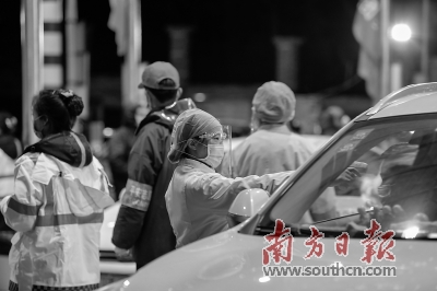 “您好,請把車窗打開,請配合我們做好體溫測量。”同樣的話語和動作,在入粵關口粵北站每天要上演上萬次。據工作人員介紹,為緩解擁堵,粵北站在站內10條檢測道的基礎上,迅速在南行道路改建7條臨時檢測道。該站緊急抽調力量組成機動檢測小組,帶著體溫檢測儀和臨時制作的檢測標簽,步行到站前車龍中開展檢測,無異常的車輛發放“已檢測”標簽放行。