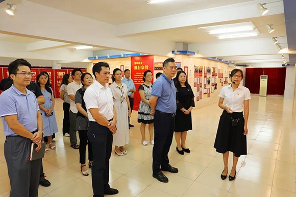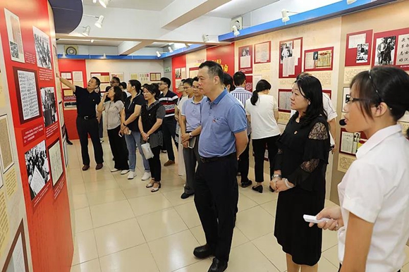 在展廳里,黨員干部們隨著講解員的講解,認真觀看了“探求真理”“堅守初心”“勇擔使命”“踐行宗旨”“從嚴治黨”等五大部分的文獻展板,重溫了中國共產黨團結帶領中國人民堅守初心使命、不斷開拓前行的光輝歷程,從紅色記憶中感悟共產黨人為中國人民謀幸福、為中華民族謀復興的初心和使命。