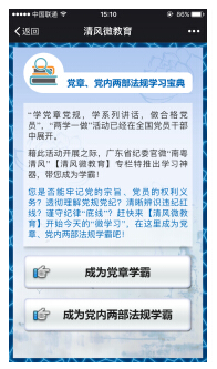 為深入學(xué)習(xí)黨章和新修訂的《中國共產(chǎn)黨廉潔自律準則》、《中國共產(chǎn)黨紀律處分條例》(以下簡稱“黨內(nèi)兩部法規(guī)”),按照省紀委通知要求,省直各單位要充分運用“南粵清風(fēng)”官方微信平臺認真組織開展黨章和黨內(nèi)兩部法規(guī)“黨員隨身微教育”活動?,F(xiàn)將有關(guān)具體事項通知如下: