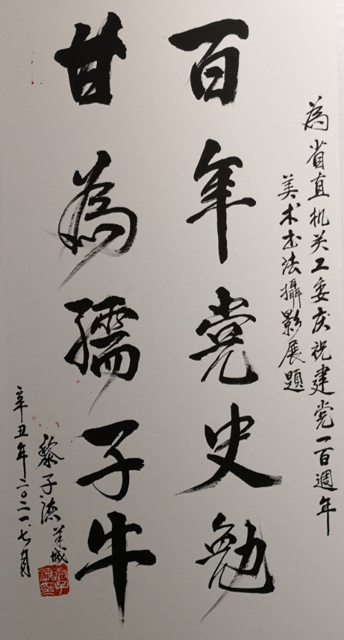 在中國共產黨百年華誕來臨之際,中共廣東省直屬機關工作委員會聯合廣東省文學藝術界聯合會、廣東畫院,以“永遠跟黨走,奮進新征程”為主題,共同舉辦慶祝建黨100周年美術書法攝影展。本次展覽從征集的1500多件作品中遴選出300余幅參展,這些作品主題突出、內容豐富、形式多樣,反映了中國共產黨百年奮斗的光輝歷程和歷史貢獻,唱響了中國共產黨好、社會主義好、改革開放好、偉大祖國好、各族人民好的時代主旋律,抒發了干部職工愛黨愛國愛社會主義的深厚情感。