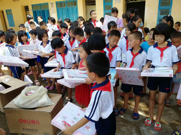 為深入學習貫徹黨的十九大精神,在廣大小學生中廣泛開展社會主義核心價值觀學習教育,合力推進廳扶貧攻堅任務落實。7月25日,廳關工委、直屬機關團委赴廳扶貧點海角村小學開展“捐書助學獻愛心”活動,并在學校操場舉行了簡樸隆重的贈書儀式。30名學生代表統一穿由廳關工委贈送的校服、佩戴紅領巾,興高采烈接受廳關工委、團委贈送社會主義核心價值觀、小學生課外讀本等各類書籍200多本(套)、文具禮盒100套。