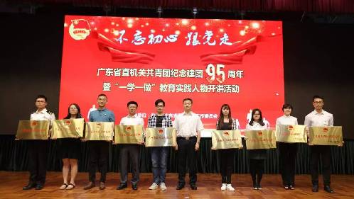 95年前的5月5日,中國共產主義青年團正式成立。為紀念這個特殊的日子,結合落實團中央開展“一學一做”教育實踐,共青團廣東省直屬機關工作委員會在廣州舉行“不忘初心跟黨走”——廣東省直機關共青團紀念建團95周年暨“一學一做”教育實踐人物開講活動。省直機關工委副書記胡明出席活動,并為獲得2016-2017年度廣東省五四紅旗團支部、團委的團組織代表頒發獎牌。